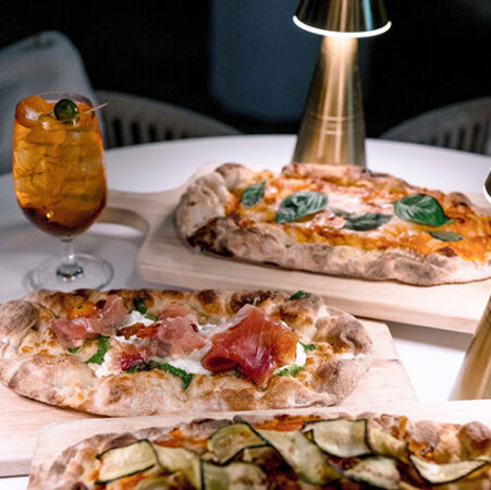 Drinks and pizza